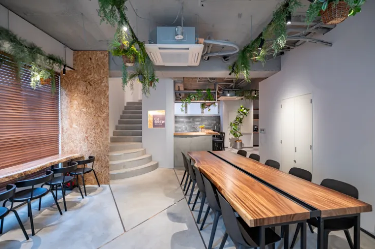 個室・固定席・フリーアドレス・オンラインMTGブースまで、 多様な働き方にフィットする空間設計と、吉祥寺らしいあたたかみのあるデザイン。 そして夜は、会員向けイベントで偶然の出会いが生まれる場へ。 CoBREWは、仕事と人とのつながりが自然に交わる、共創のためのワークプレイスです。